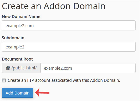 Leave the option Create an FTP account associated with this Addon Domain as it is.