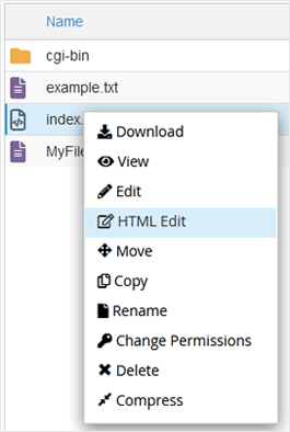 4. Right-click on the file. Then click on Edit or HTML Edit in the Context Menu.