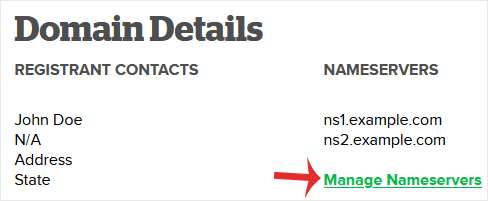 5. Scroll down to the bottom of the page and under Nameservers, click on Manage Nameservers.