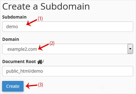 3. Under the Subdomain field, enter your subdomain name, such as demo. Select the appropriate domain from the drop-down list if you have several domains.