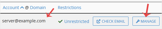4. If your email address is server@example.com, you should see a Manage option on the right side of your email address. Click on Manage.