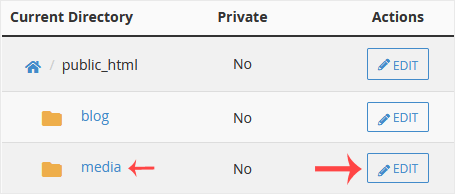 4. Click on the Edit, showing next to the directory you want to protect.