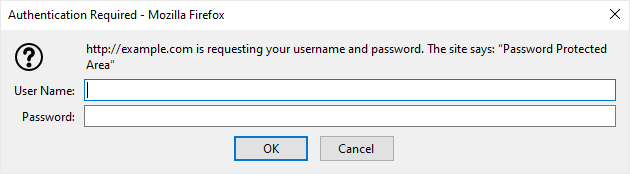 If you try to open the password-protected directory in your browser via the URL www.example.com/myfolder, your browser prompts for credentials.